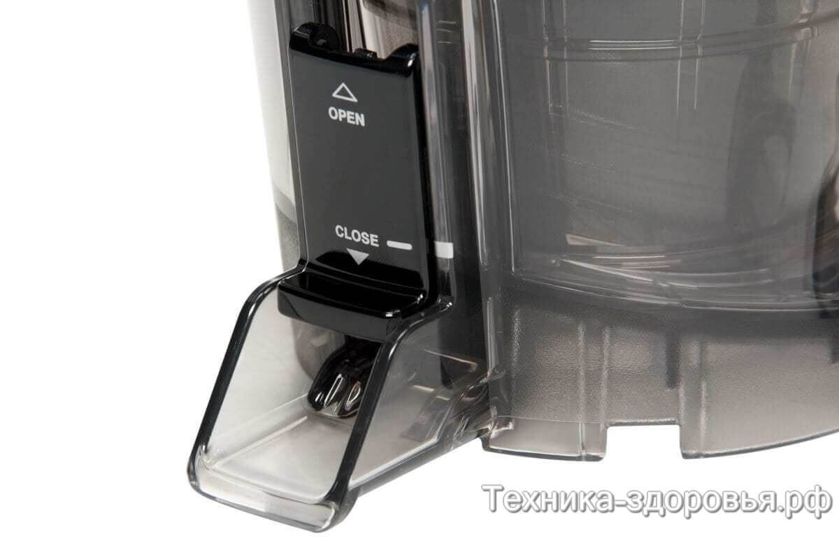 Корзина легко снимается с корпуса в одно нажатие на специальный рычаг подъема и также просто надевается обратно.