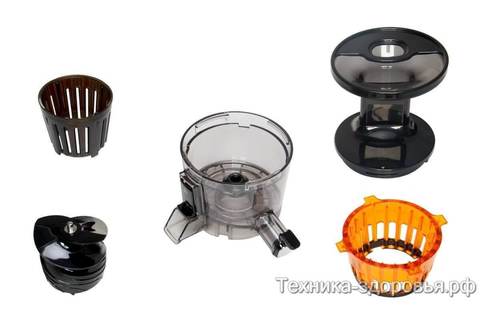 В отжимном механизме новой модели полностью отсутствуют металлические детали. Фильтрующий элемент представляет собой набор из нескольких решеток. Три варианта сборки помогут разнообразить ваш рацион: соки с мякотью и без, мороженое. Решетки полностью выполнены из материала Ultem. Теперь мыть детали можно за минуту - частицы продуктов не забиваются в отверстия сеточек, как это было в предыдущих моделях.