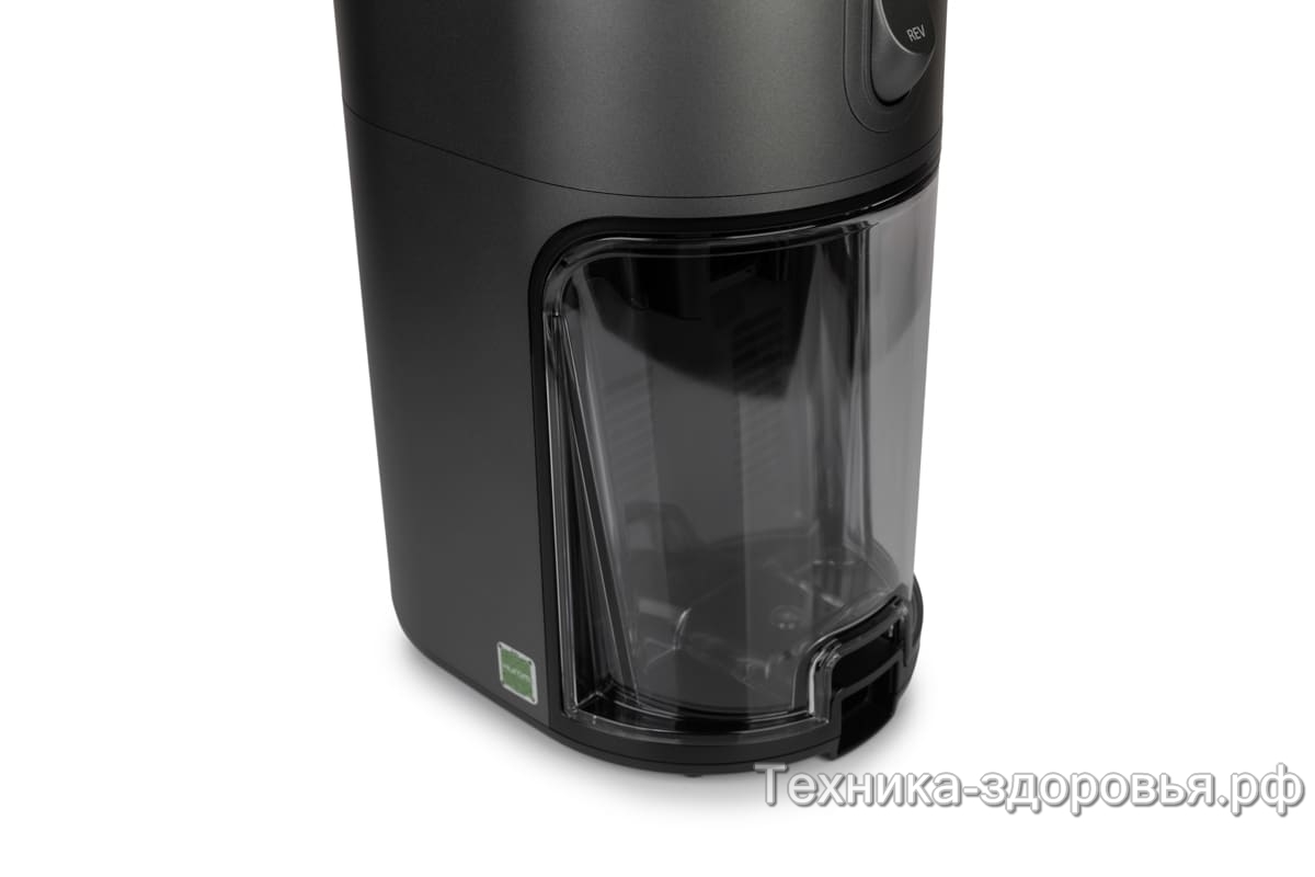 Корпус соковыжималки оснащен встроенной емкостью для жмыха объемом 900 мл. Сам корпус соковыжималки имеет покрытие Soft-Touch, а значит на корпусе не будут оставаться отпечатки пальцев, что значительно упрощает уход за прибором.