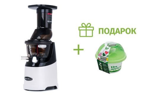 Низкая скорость кручения шнека в 60 об/мин позволяет получать сок холодного отжима. Двигатель мощностью 240 Вт может работать без остановки до 30 минут и без усилий успеет переработать до 15 кг любых качественных фруктов, овощей, зелени и ягод. А насадка измельчитель пригодится для получения ореховой пасты, мороженного из замороженных фруктов и сырых овощных и фруктовых каш и сорбетов.