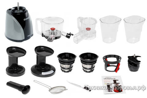 Универсальная, для приготовления всех видов соков, витграсса, смузи, сорбетов, ореховой пасты, орехового молока. Дополнительная насадка измельчитель в комплекте.
