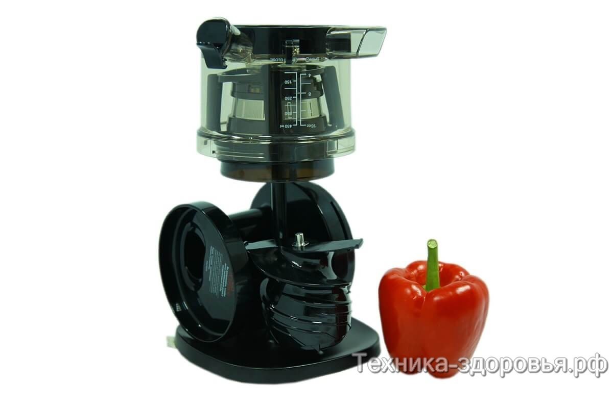 Скорость вращения шнека составляет всего 43 оборота в минуту, благодаря чему продукты не подвергаются нагреву и термодеструкции. Технология холодного отжима позволяет плодам сохранить в себе максимум полезных компонентов.