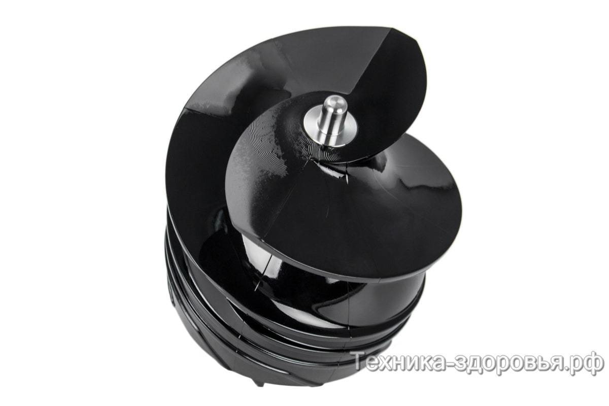 Шнек имеет два витка, благодаря чему скорость и сила отжима увеличивается в два раза. Второй виток значительно повышает уровень КПД и способствует более качественному измельчению продукта.