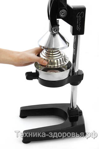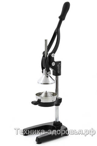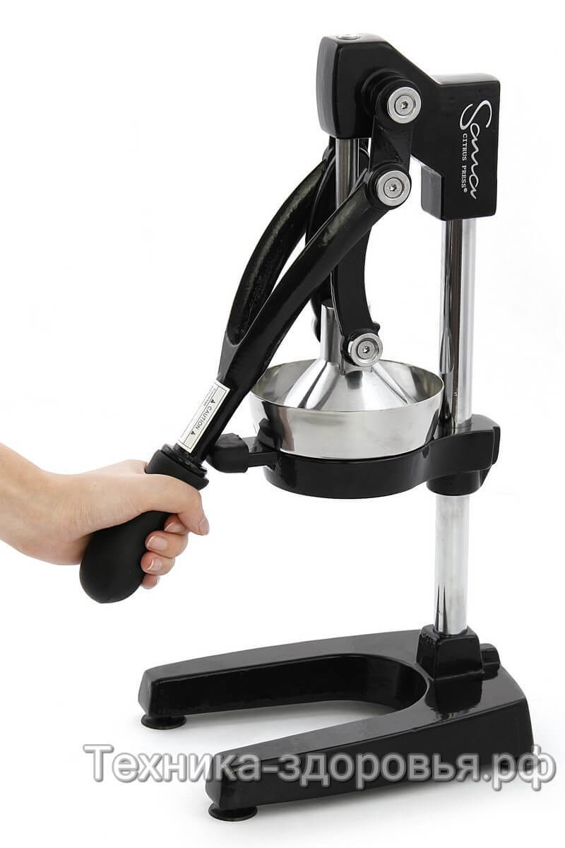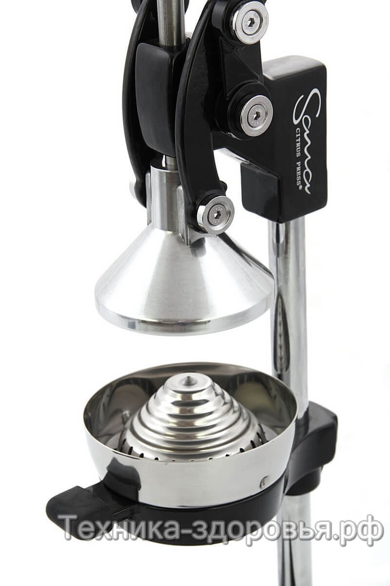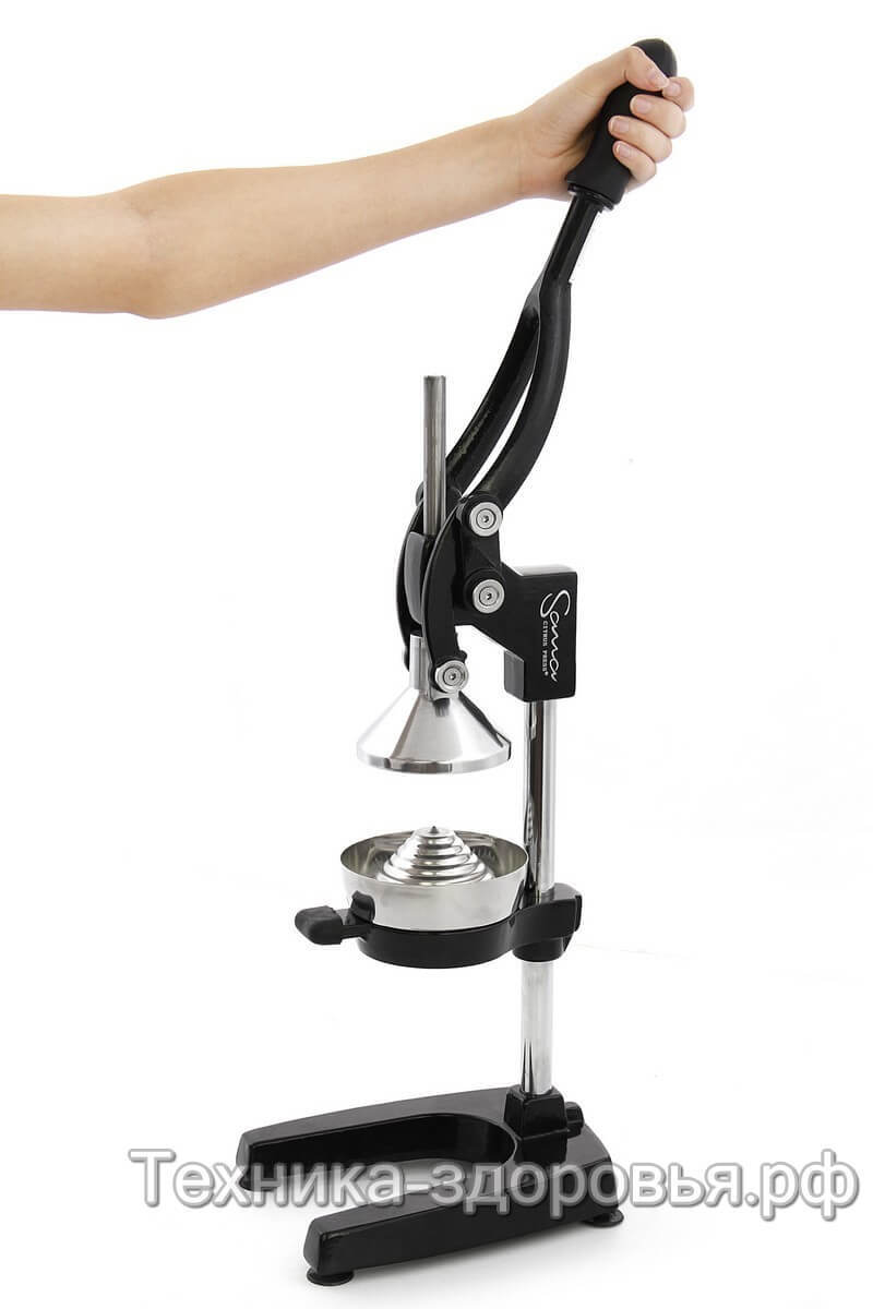 Прессовая соковыжималка Sana Citrus Press работает по принципу холодного отжима - вертикальный механический пресс со сверхпрочным конусом аккуратно выжимает сок из фруктов, при этом максимально сохраняя полезные витамины и микроэлементы.