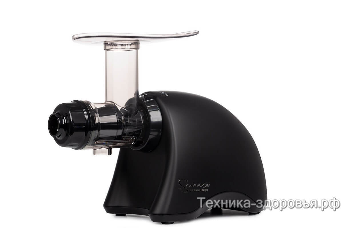 Широкое загрузочное отверстие. До появления в продаже одношнековой модели Sana Juicer EUJ-707 загрузка продуктов требовала гораздо больших усилий. В нее можно загружать порезанные всего на две части яблоки, пучки зелени, огурцы, длинную морковь, не опасаясь засоров и протеканий.