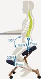 Большую часть нагрузки принимает на себя упор в колене, таким образом еще больше разгружая спину, а также предотвращая сползание. Сила реакции опоры в тазу уменьшается на 40%.