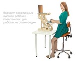 Монитор следует расположить таким образом, чтобы глаза находились на уровне верхней трети экрана. Добиться нужного положения поможет кронштейн, специальная подставка для ноутбука Surikatus и консоль.