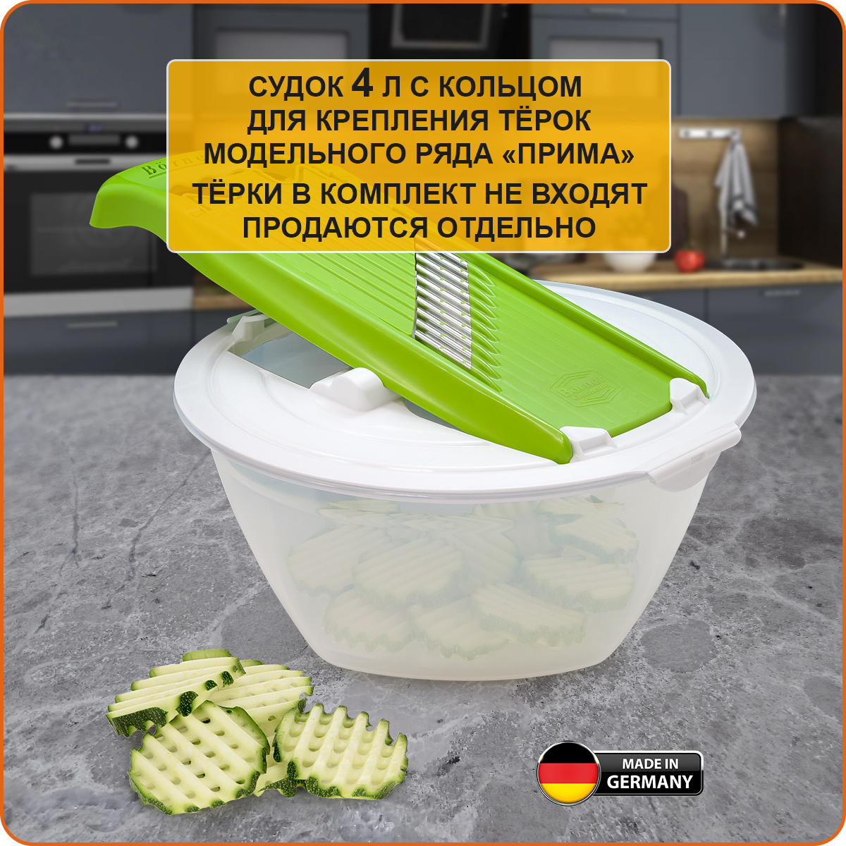 Внимание! Совместимость: только терки и овощерезки модельного ряда "PRIMA".