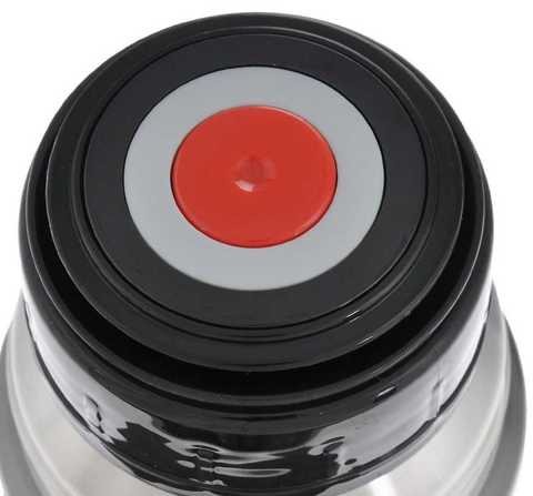 Крышку можно использовать в качестве чашки для напитков. Пробка с кнопкой удобна в использовании и позволяет, не отвинчивая ее, наливать напитки после простого нажатия.