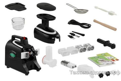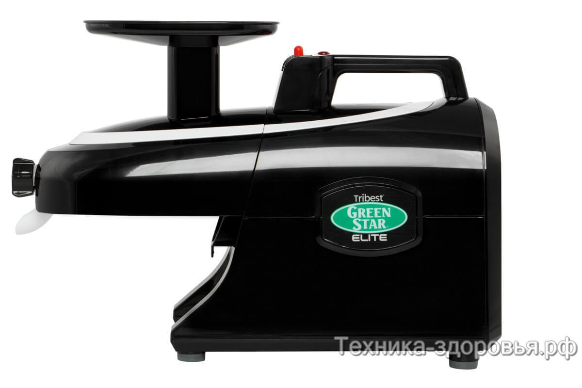 Tribest Green Star Elite GSE-6000 – премиальная горизонтальная двухшнековая соковыжималка. Лимитированная коллекция в черном цвете с дополнительным носиком для приготовления спагетти!