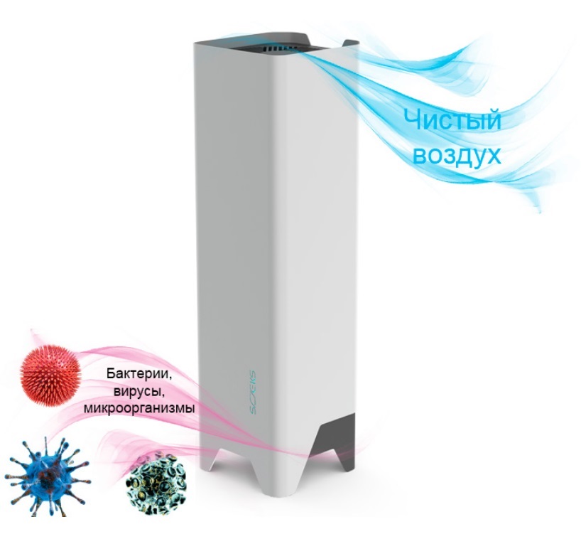 Воздух обеззараживается методом рециркуляции через лучи ультрафиолета. УФ лучи заблокированы внутри устройства и остаются опасными только для микробов в воздухе.