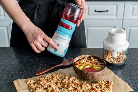 С помощью портативного блендера можно приготовить в любом месте коктейли или смузи.