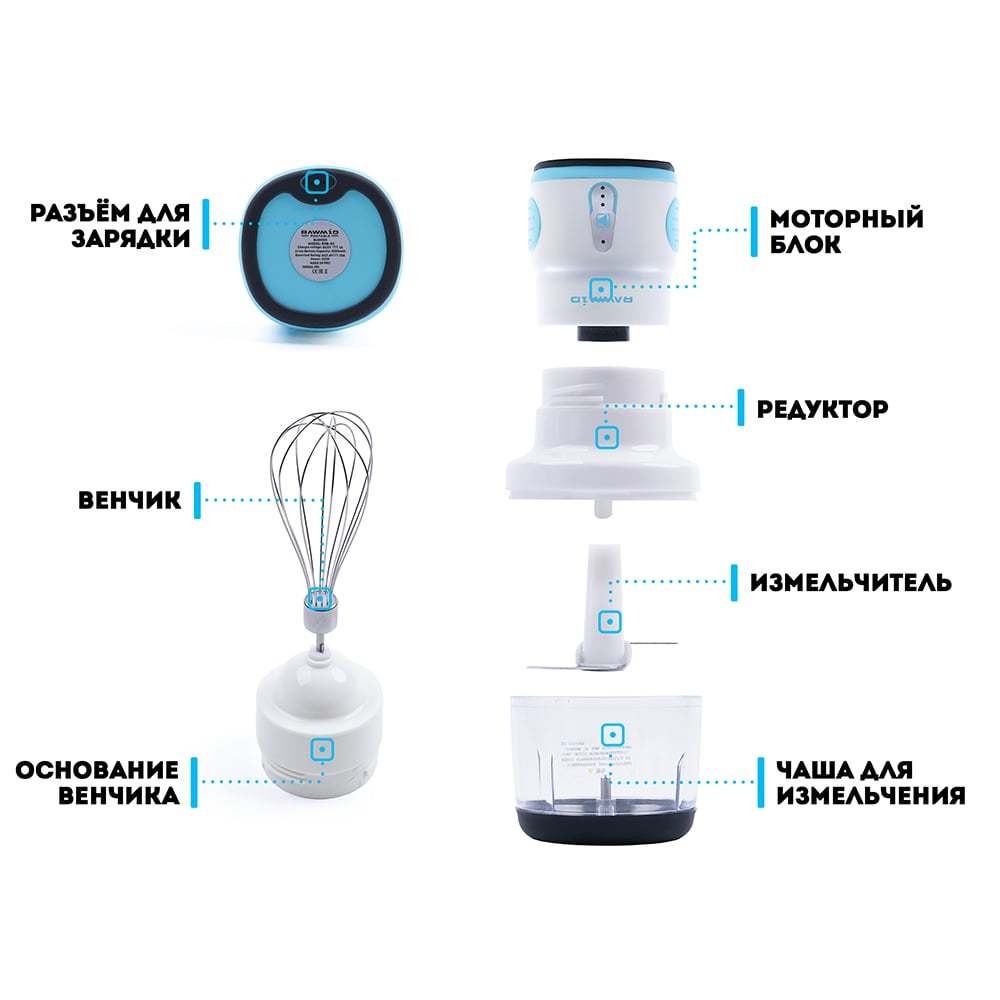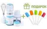 Чаша для измельчения изготовлена из пищевого пластика. Дополнительный стакан объемом 350 мл – из стекла. В комплект входит металлический венчик. Он с легкостью поможет приготовить соусы, крема. А при помощи ручного вакуумного насоса можно продлить срок хранения продуктов, откачав воздух из стакана.