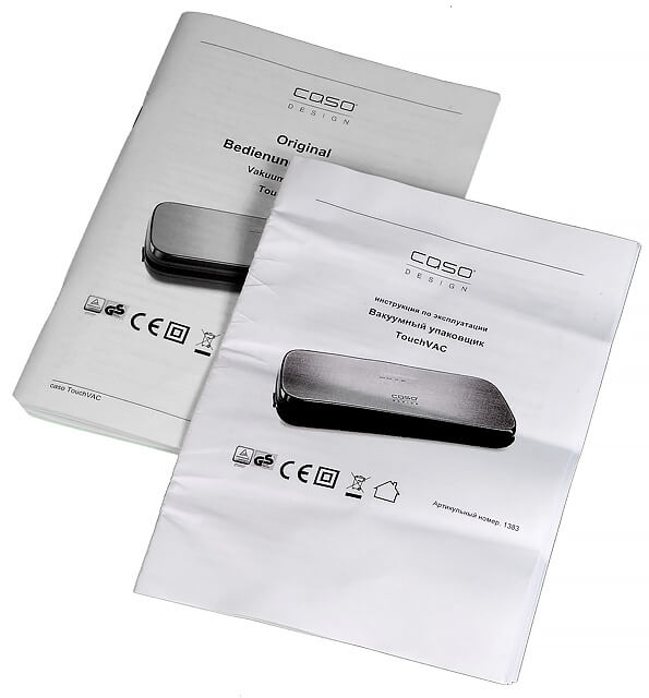 Русскоязычная инструкция к вакууматору представляет собой небольшую 20-страничную брошюру формата А5, отпечатанную на белой бумаге.