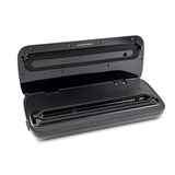 Правила вакуумирования довольно просты: достаточно поместить необходимые предметы в пакет так, чтобы между верхнем краем и открытым концом осталось достаточно свободного места (производитель рекомендует оставлять не меньше 8 сантиметров между продуктами и краем пакета). После этого следует выровнять открытый конец пакета и, в случае необходимости, очистить его от влаги и грязи (например, протереть бумажной салфеткой). Затем открытый конец пакета вставляется в вакуумный отсек прибора и зажимается с помощью двух фиксаторов. Нажатие кнопки Vac Seal запускает процесс откачки воздуха и запайки пакета.