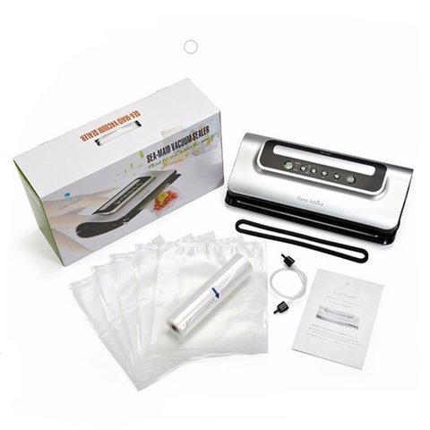 Вакуумный упаковщик Sea-Maid GN 1058 не зря пользуется популярностью у всех, кто заботится о свежести и сохранении полезных свойств своих продуктов. Ведь в нем сочетаются надежность, высокая функциональность и стильный дизайн корпуса. В стандартную комплектацию, помимо самого прибора, входят пакеты для упаковывания, вакуумная пленка, шланг для вакуумирования контейнеров и маринования, шнур питания и инструкция.