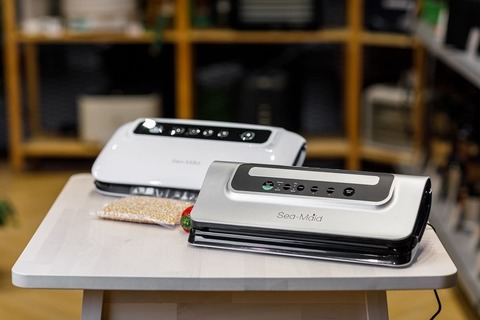 Устройство Sea-Maid GN 1058 выполнено максимально продумано. Встроенный нож позволяет легко отрезать пакеты нужного размера, а уплотнитель, выполненный из качественных материалов и специальные защелки – надежно фиксируют пакет в приборе. Мощный насос обеспечивает высокое давление всасывания, что делает возможным откачивание воздуха не только в полном объеме, но и быстро. Помимо всего перечисленного, важным моментом является то, что ваккууматор, при запаивании пакета, создает на упаковке широкий и плотный шов запайки, а это значит – надежная защита от попадания воздуха.