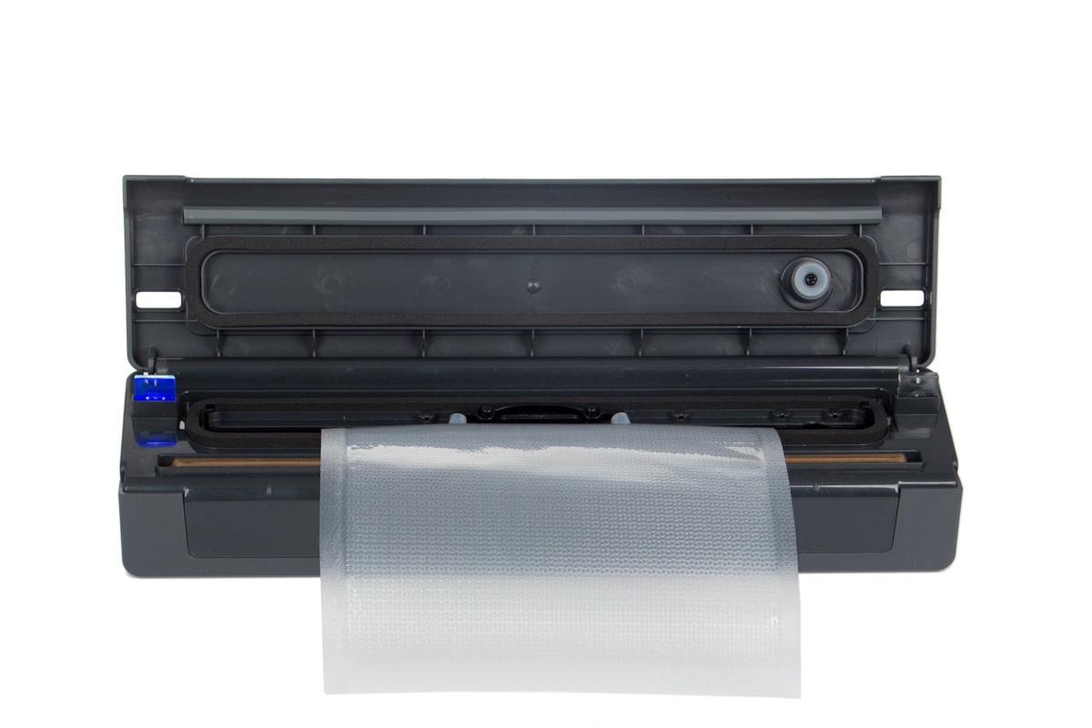 Аппарат поставляется не с набором пакетов ограничивающих размер упаковываемых продуктов, а с рулоном, имеющим предварительно-запаянные поля с двух сторон. Такой подход позволяет не только отталкиваться от количества продуктов при упаковывании, но и существенно экономить расходные материалы при необходимости сохранить небольшие порции.
