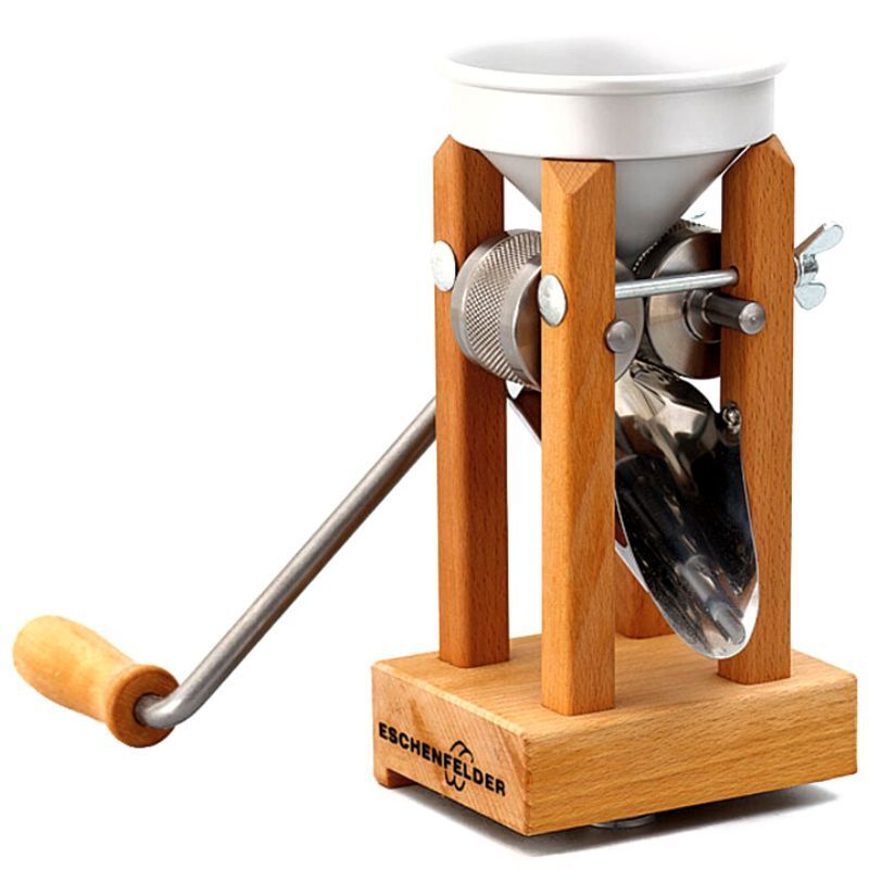 Ручная Eschenfelder AB, изготовленная из бука, предназначена для изготовления хлопьев для приготовления каш, мюсли, печенья, оладьей, использования в качестве панировки и других вкусных и полезных блюд.